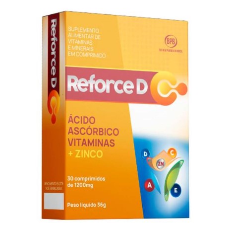 Reforce D + Zinco é um suplemento alimentar apresentado na categoria de nutrição, comercializado em embalagem com 30 comprimidos de 1200mg. É indicado para adultos visando ajudar no funcionamento do sistema imune, na absorção de ferro dos alimentos e nos danos causados pelos radicais livres no organismo.